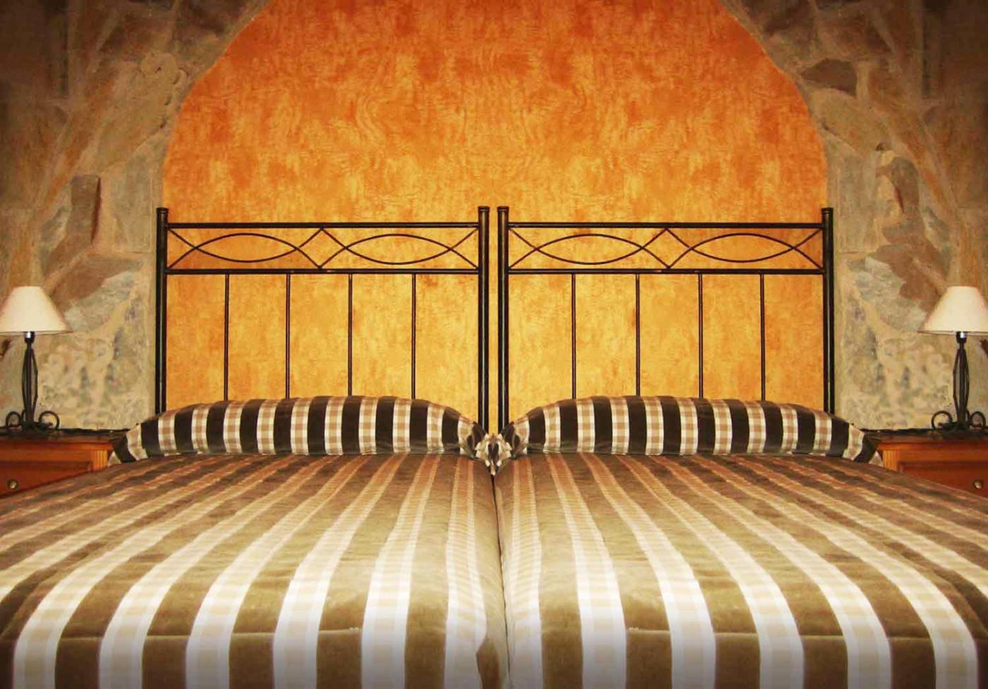Las habitaciones del Hotel Rural Don Quijote presentan construcción en piedra vista y decoración rústica en tonos cálidos, y tienen TV, calefacción y baño privado con ducha, entre otras comodidades.